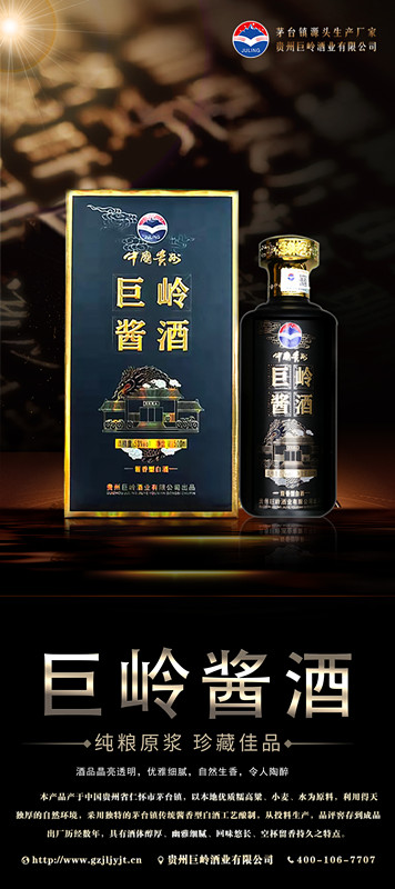 貴州巨嶺酒業有限公司,座落于聞名世界的古鎮,國酒之鄉“茅臺鎮”。與“國酒茅臺”共享得天獨厚的氣候、土壤、水源、以及微生物群等自然資源;《巨嶺酒業》老作坊前身“巨嶺燒坊”,經過多年的傳承,秉承先輩們代代相傳的古法釀造工藝,歷經幾代人的延續和釀酒發展,奠定了《巨嶺酒業》發展的堅實基礎。
